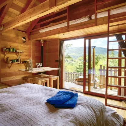 Discover our selection of treehouses, lodges and cabins with a hot tub or jacuzzi