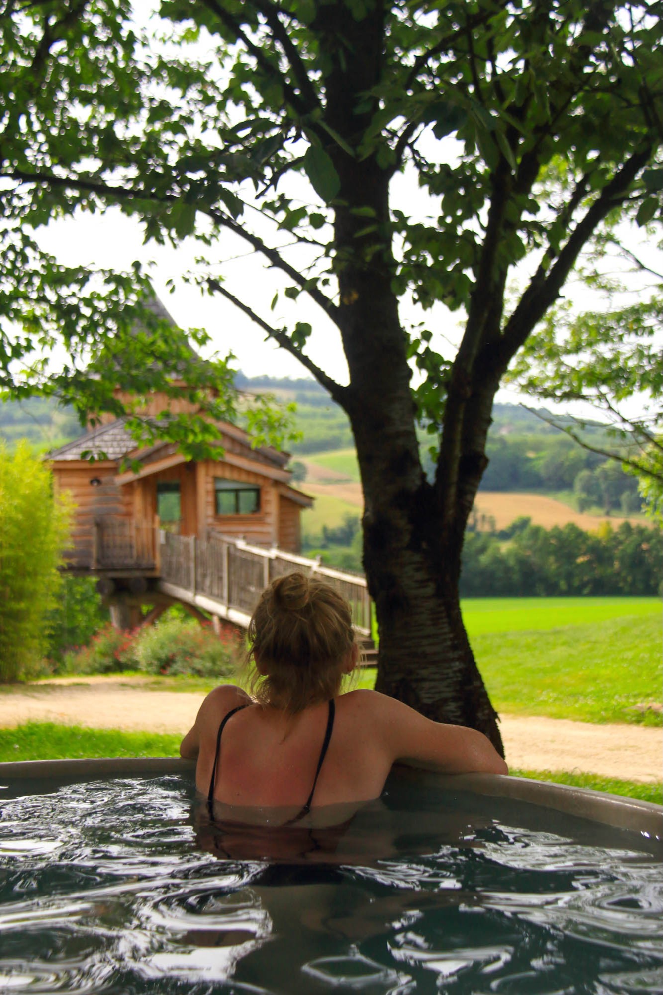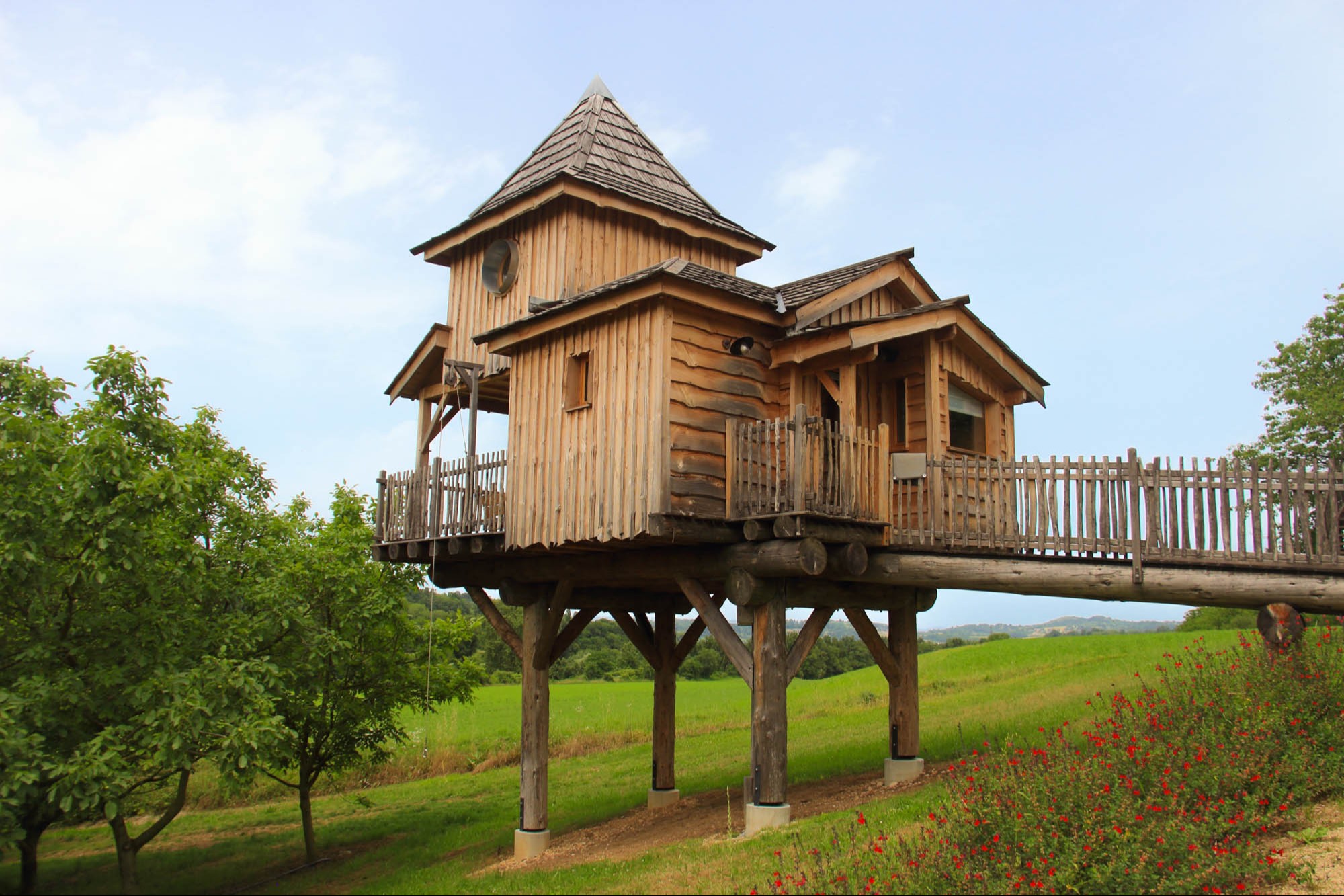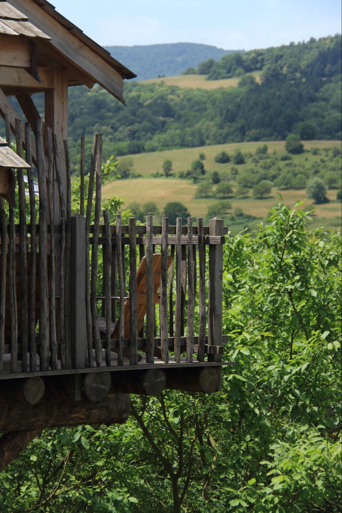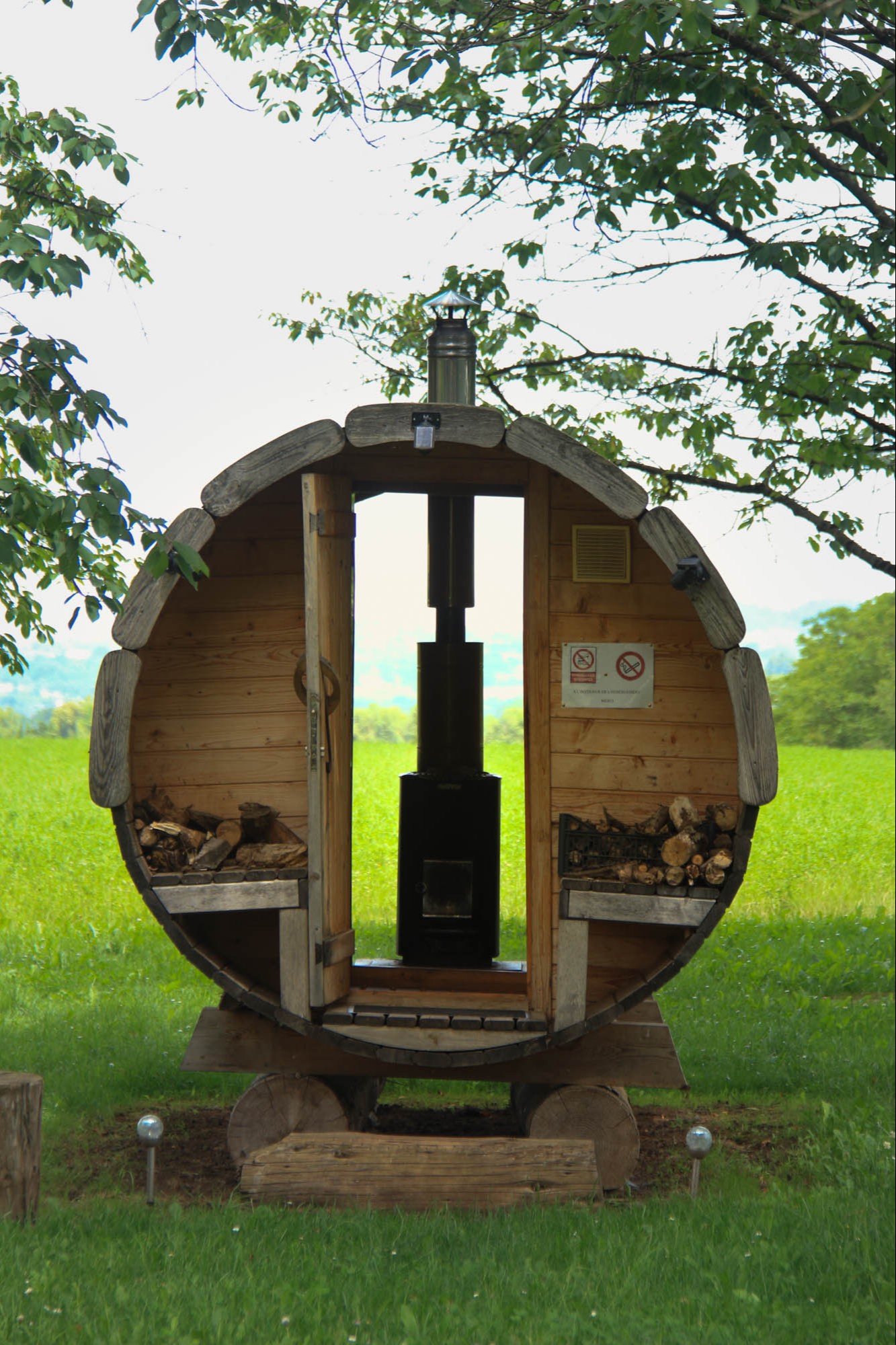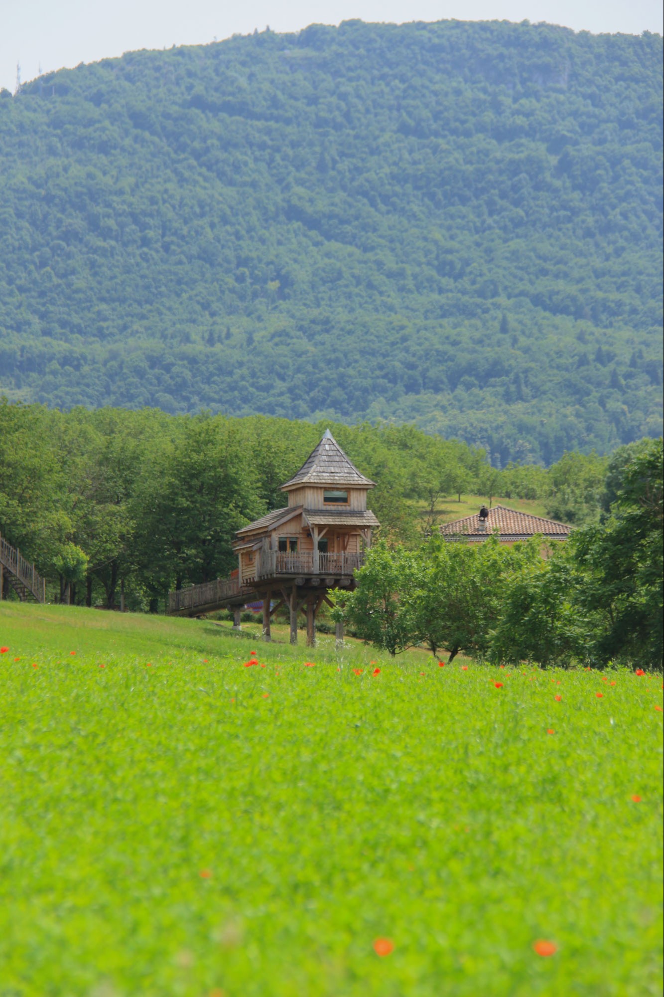 In 2017 a first trailer is installed with a view on the walnut trees. Three other trailers and a tree house have been added since.