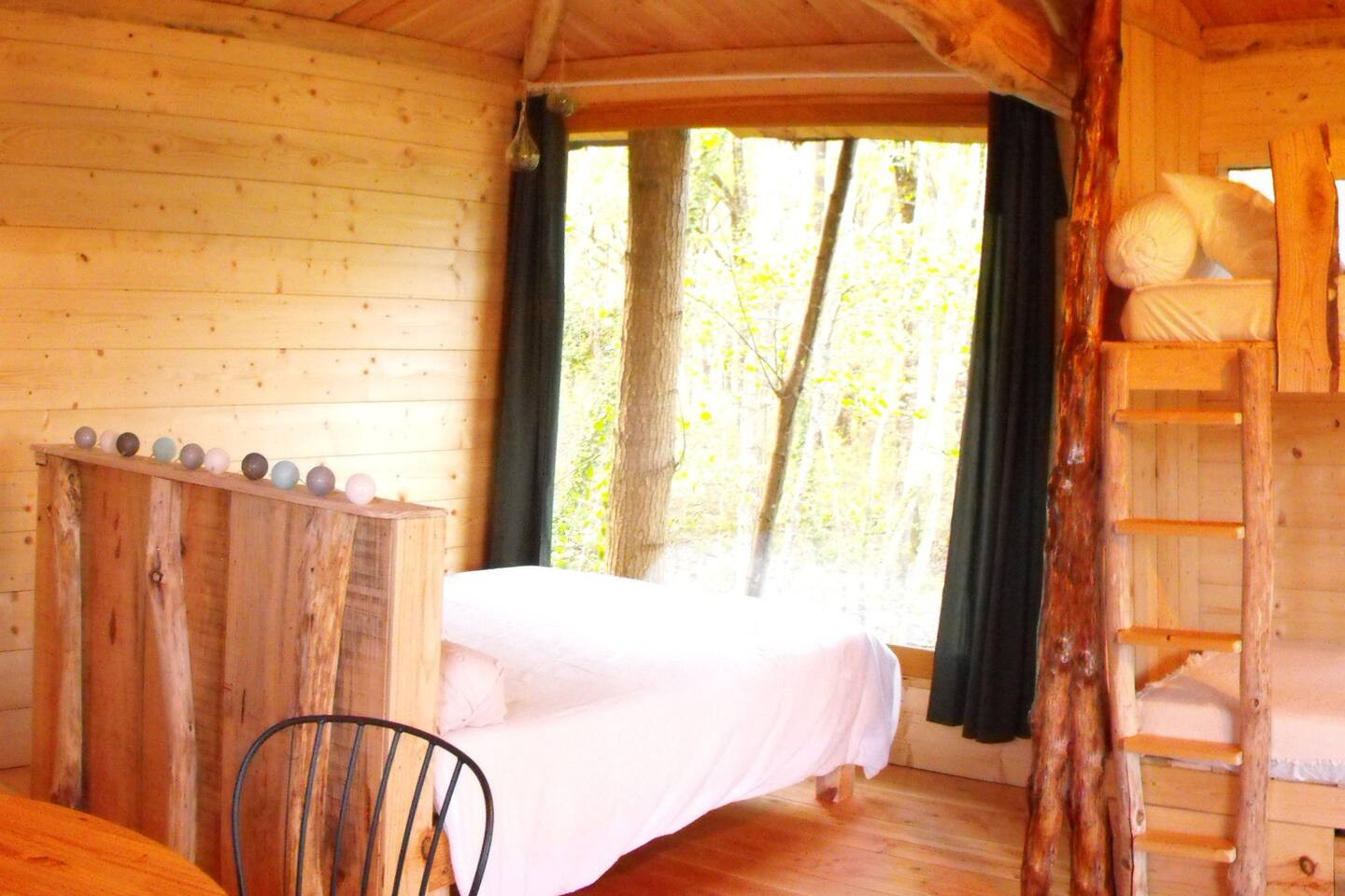 The Cabane des Cerfs is a singular, handcrafted wooden treehouse uniquely situated at La Ferme de Largenté. Elevated three meters above the forest floor, this cozy retreat blends craftsmanship and nature. A suspended walkway leads to a generous 40 m² terrace that offers uninterrupted views of the park where deer, does, and fallow deer roam freely. This vantage point is perfect for birdwatching, wildlife photography, or simply savoring the quiet rhythm of the countryside.