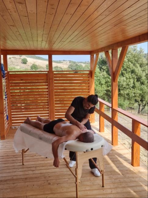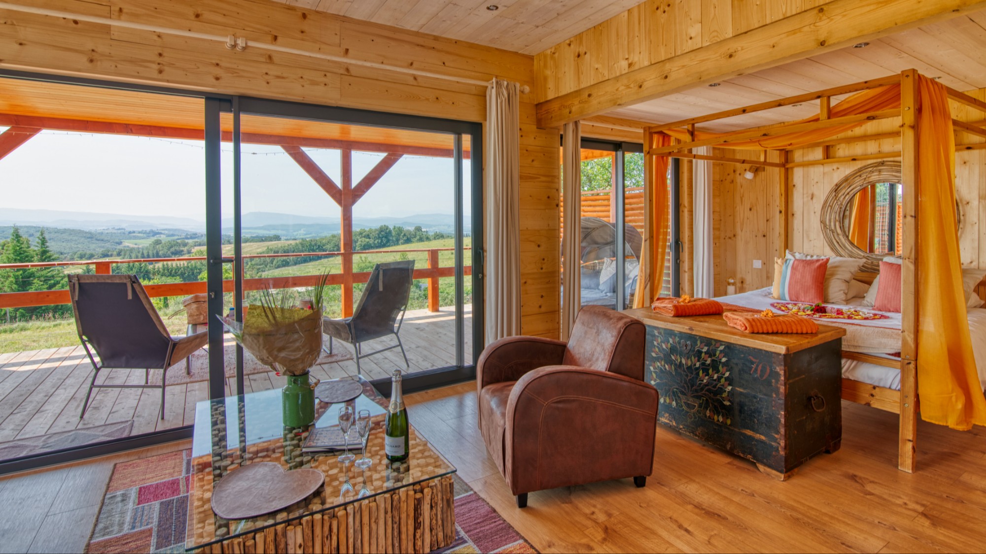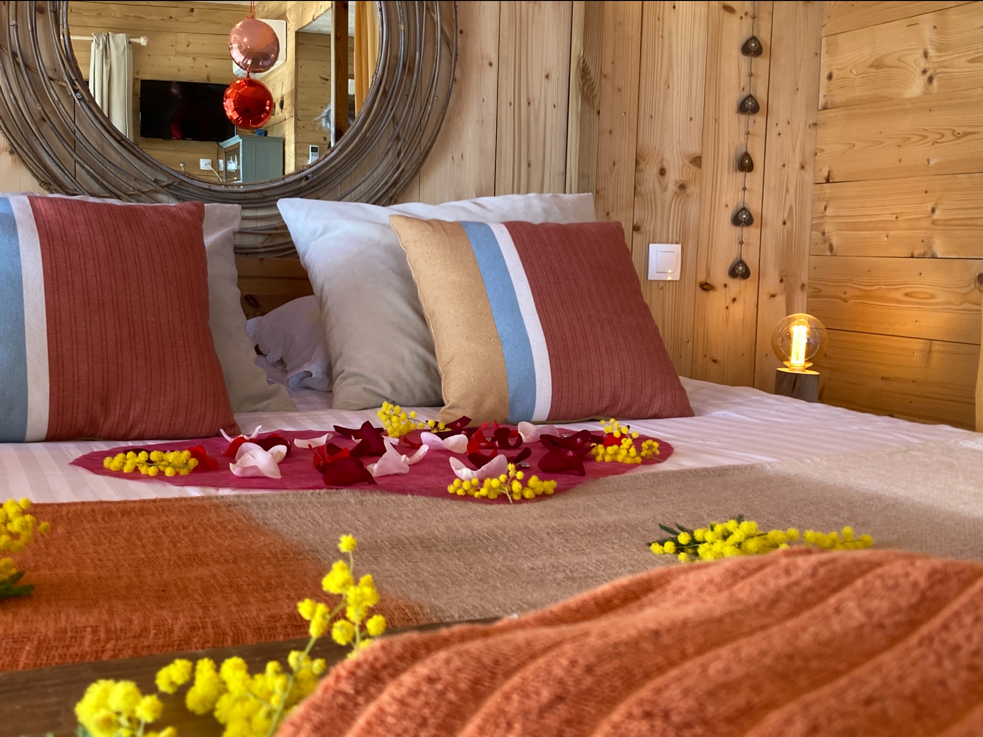 Nestled on 17 hectares of Mediterranean countryside just 20 minutes from Carcassonne, Trésors de Campagne offers an authentic escape into nature with six sustainable wooden cabins, each equipped with a private spa and breathtaking views of the Pyrenees and the Château de Villarzel. The estate is family-run by Florence Vimal du Monteil and her family, who combine agricultural expertise with hospitality to create a unique agro-ecological experience. Our permaculture garden and organic vegetable production supply the restaurant and many of the cabin meal options, reflecting our commitment to sustainability and local food. Guests enjoy included breakfast, quality linens and towels, and complimentary access to our secluded pool (11 m x 5 m) from May to September. The domain is ideal for romantic weekends — choose one of our romantic packages with champagne, chocolates, and rose petals — or for family escapes where children can meet ponies and other farm animals. For those seeking activity, we offer guided horse rides with Camille, a qualified equestrian instructor, pony discovery sessions for children, and beautifully marked hiking routes that reveal panoramic views of the surrounding oak forests and Mediterranean fields. On-site dining centers around locally produced, organic ingredients. Options include terroir meal plates, gourmet dinner baskets (land or sea), vegetarian menus, picnic-style platters, and special celebration packages. Many services require 48 hours advance notice and are payable on site. Whether you come for relaxation in your private spa, reconnecting with family, or exploring historic sites like the Cité de Carcassonne and Cathar castles nearby, Trésors de Campagne delivers a restorative, responsible stay in Occitanie. Bookings close at midnight for same-day reservations. Check-in is from 15:00 to 19:00 and check-out before 11:00. Pets are not accepted to preserve our farm environment.