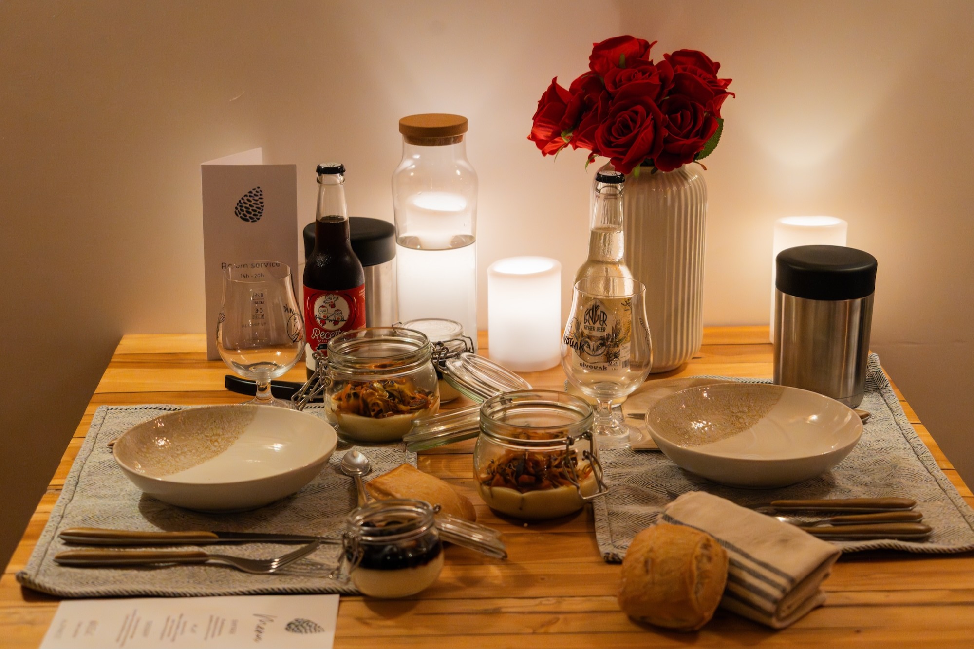 Alpinest stands out through its focus on sensory, personalized stays. Brieuc, the resident chef trained at Institut Paul Bocuse and experienced in starred kitchens, prepares seasonal meals on site using fresh, local ingredients. Guests can order dinners delivered warm to their cabin, enjoy a tasting board with dessert, or request a leisurely brunch. Optional upgrades include romantic setups with candles and rose petals, premium early arrival, and champagne packages. Pets are welcome, allowing couples to share the experience with their dog.